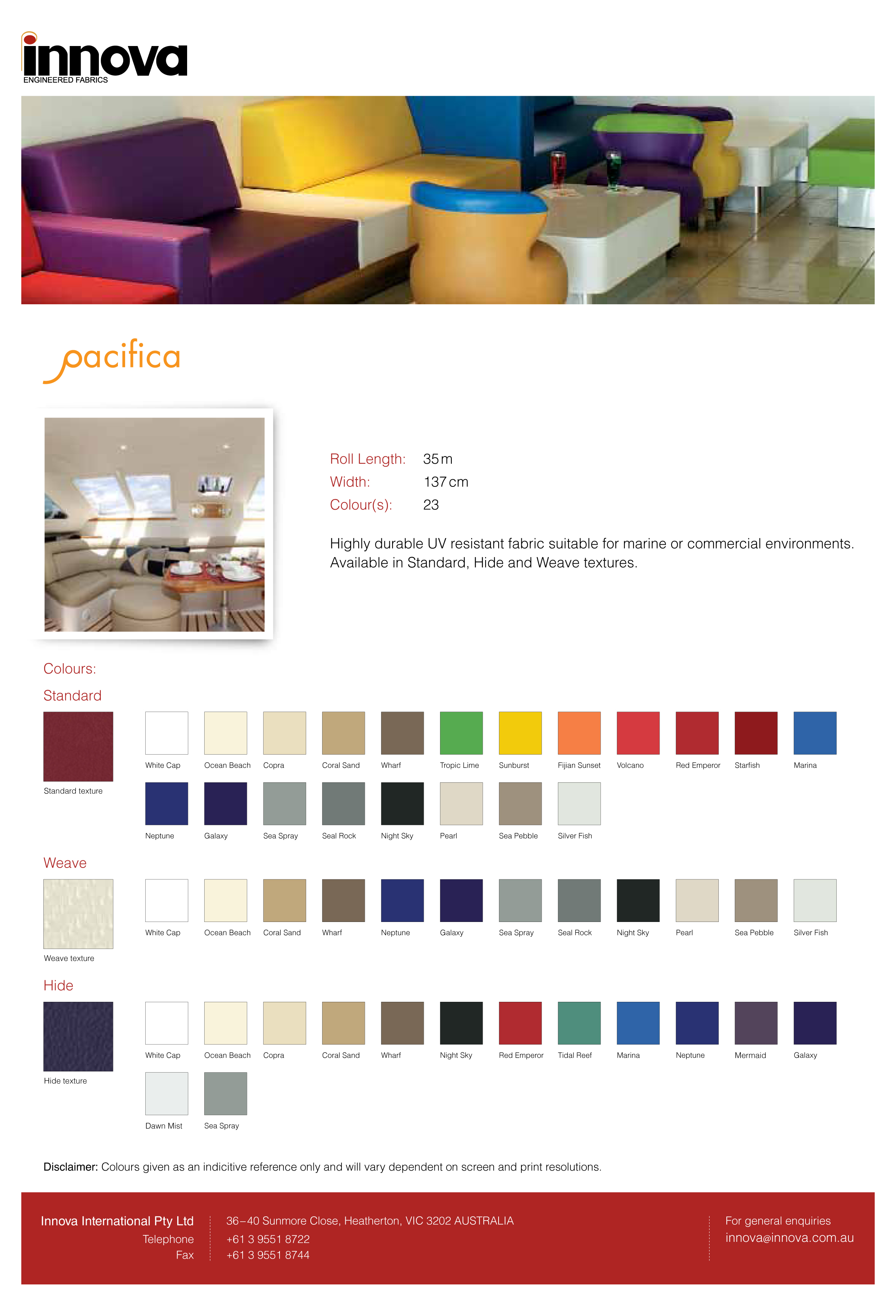 Our Products » BOAT FABRICS » PACIFICA SEATING